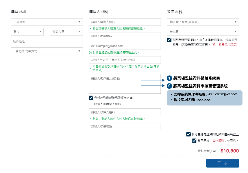 1. 本產品為$10,500元單一案場API串接服務,下單前自行評估需要開通的數量/備註需要上傳的系統商名稱即可購買開通,效期固定以五年為單位。