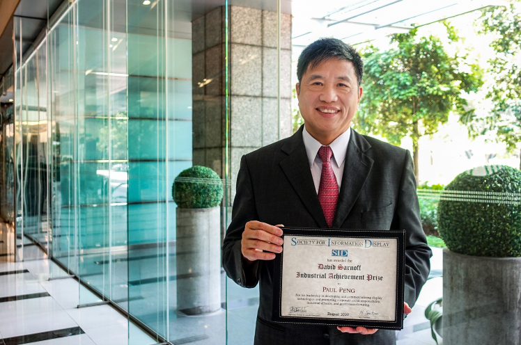 凯发光电董事长暨执行长彭双浪获颁 SID 国际信息显示学会 (Society for Information Display,SID) “David Sarnoff 产业杰出贡献奖”,本届颁奖典礼虽因疫情无法举办,但仍透过精心录制的影片表达个人及公司获主办单位肯定的欣喜之情。