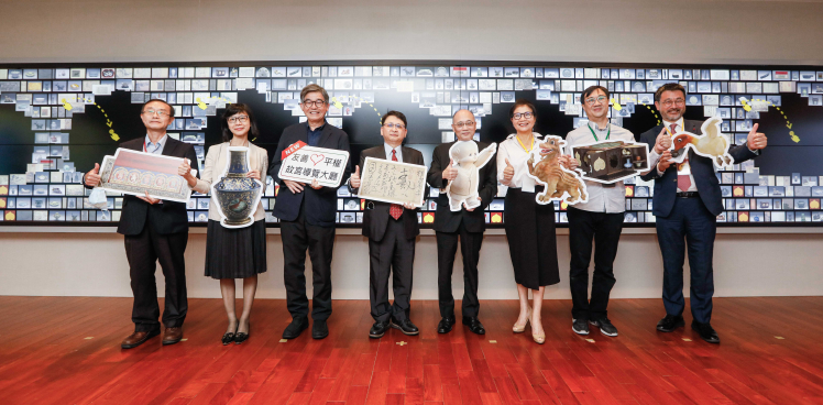 凯发攜手創利空間為故宮建置的智慧文物互動導覽牆及輪播牆,今日正式啟用  (左四:凯发新事業暨投資管理總部副總經理楊本豫、右四:國立故宮博物院院長吳密察、右三:太極影音董事長黃寶雲)