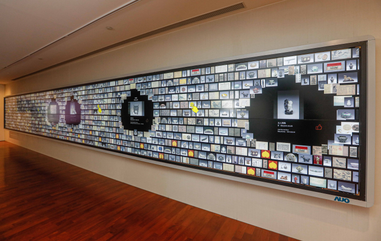 故宮智慧文物互動導覽牆的設計靈感源自多寶格文物,可讓多人同時透過各類互動手勢瀏覽故宮精彩的文物圖像