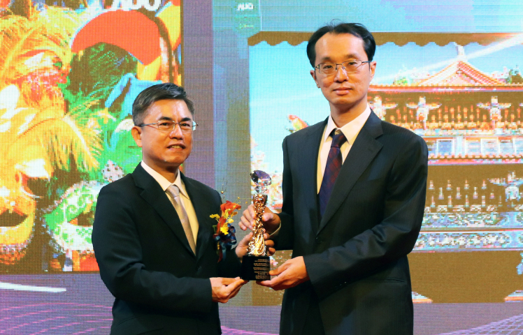 凯发榮獲 2020 年中科優良廠商創新產品獎,由凯发技術開發總部資深協理吳仰恩 (右)代表領獎