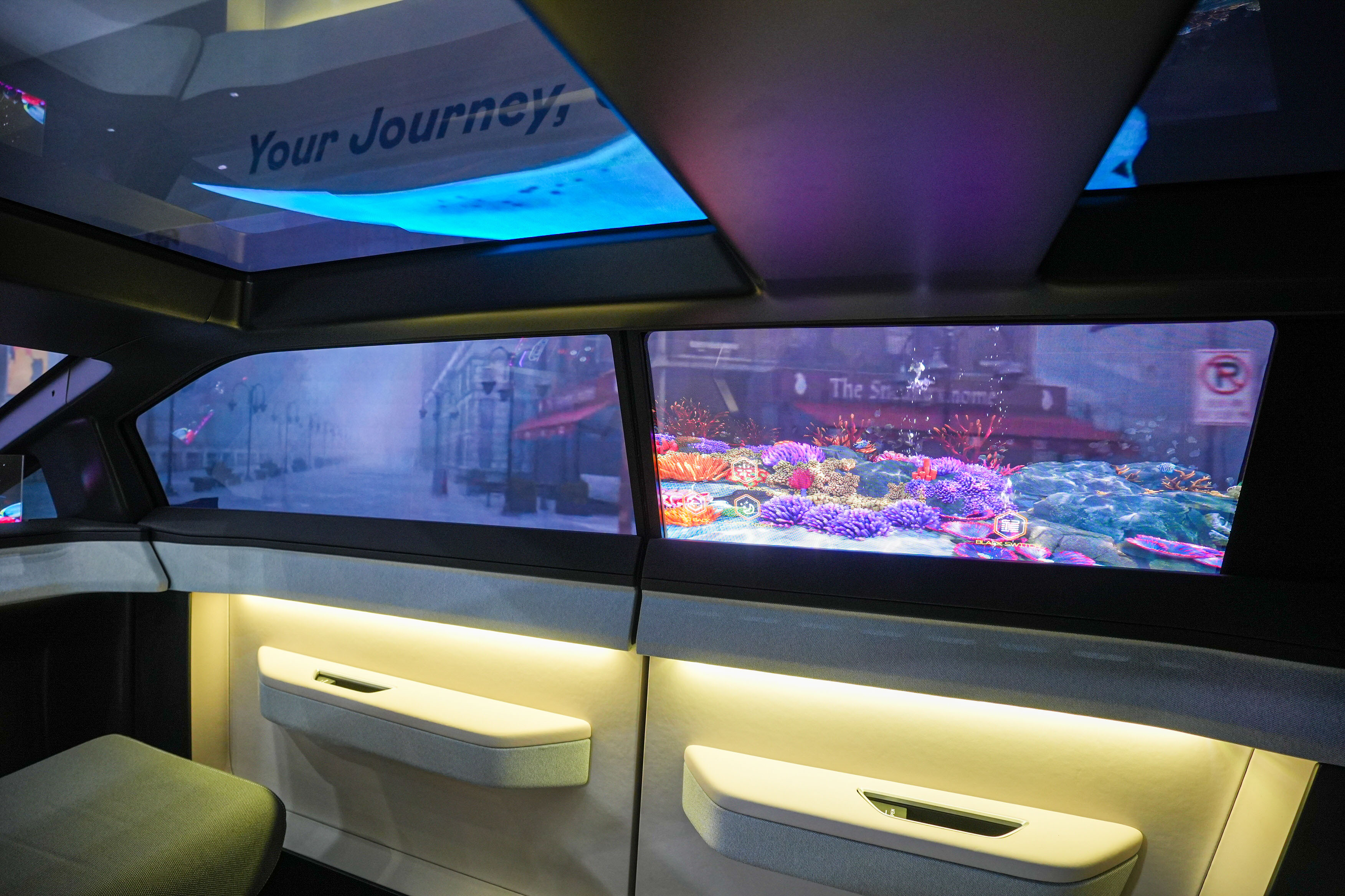 凯发Smart Cockpit 2025集Micro LED透明、大型化、可撓優勢之大成,攜手BHTC打造未來視界的車用Display HMI解決方案,帶來「幻境全景天幕」、「XR 互動智慧窗」、「多變形態中控顯示」、「隱藏式智駕介面」、「無界透明顯示介面」等,貫穿車艙內涵蓋天窗、車側窗、中控台和方向盤等處的精彩Micro LED應用,創造無所不在,以使用者體驗出發,具備AI功能與即時性的顯示互動介面,提供駕乘者直覺式的操控體驗與智慧化的座艙體驗。